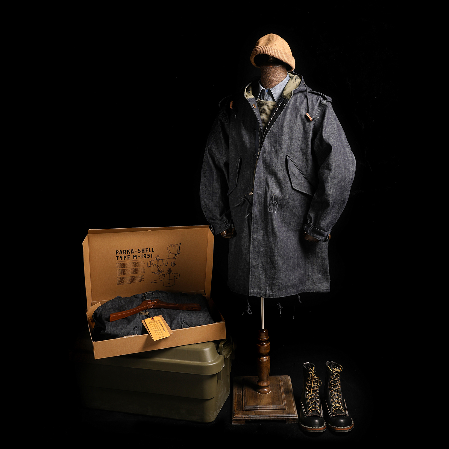 GIZEMO M51 denim fishtail coat Japanese denim fabric M1951 PARKA long windbreaker