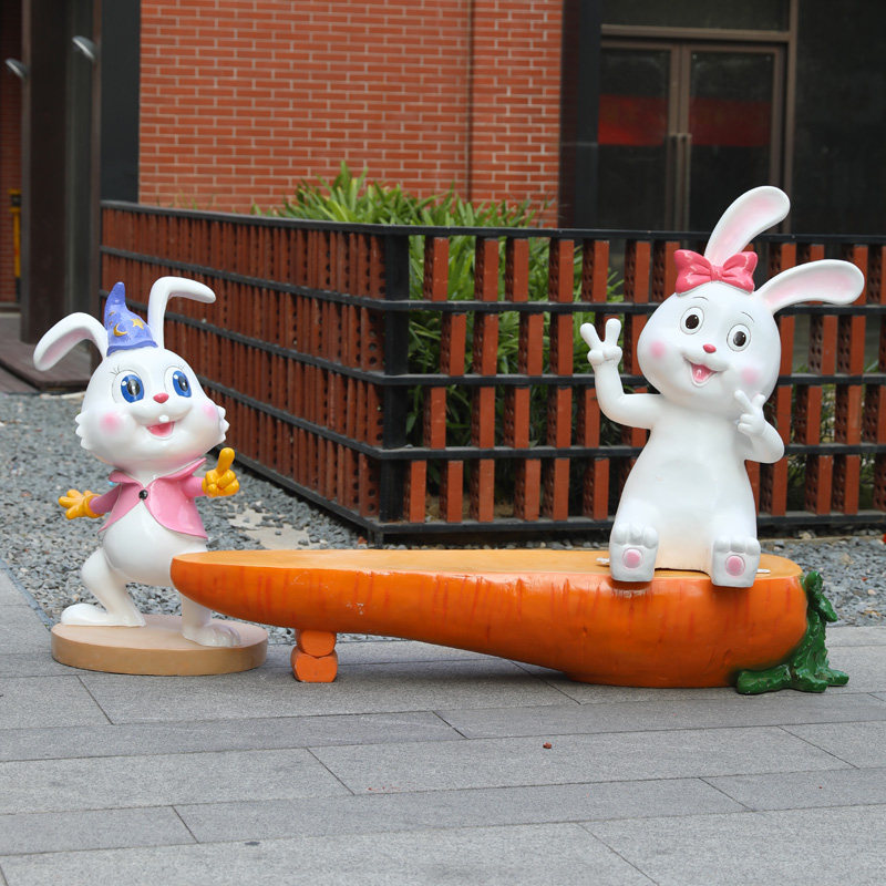 Cartoon bunny ornament carrot stool outdoor FRP seat sculpture kindergarten linshang square decorations