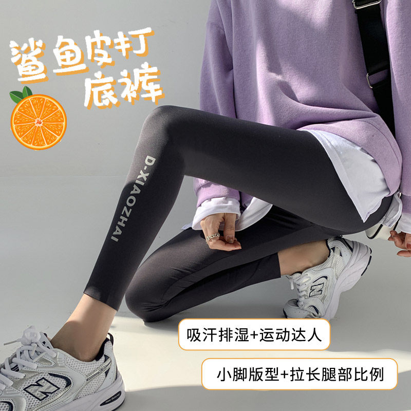 Sharkskin inner pants women's outer wear spring and autumn new style stovepipe pressure Barbie pants black elastic tight yoga pants women
