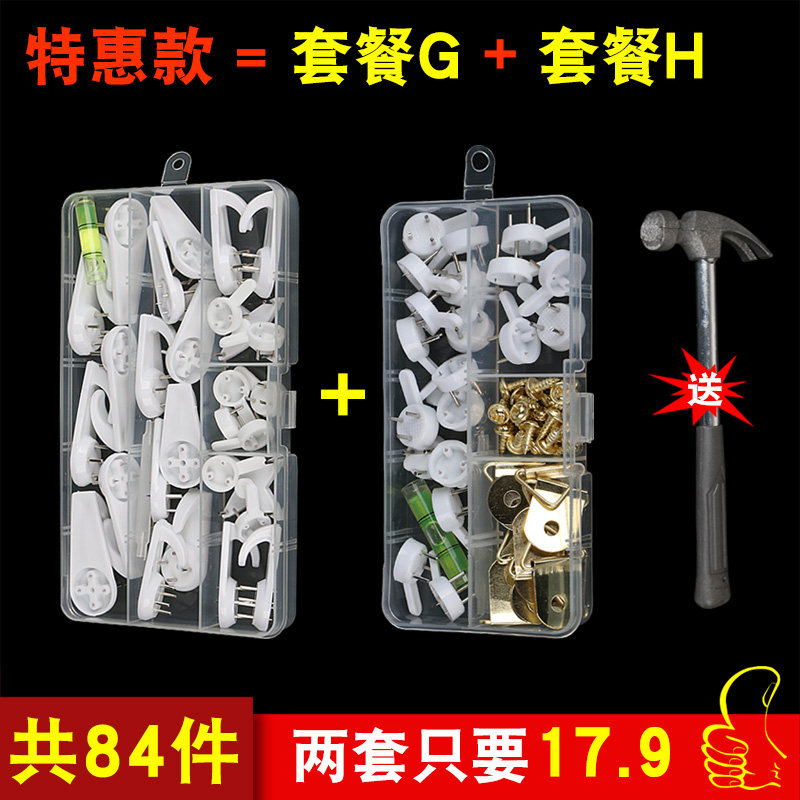 Special offer (2 boxes of 84 pieces with hammer) Package A with accessories for large, medium and small photo frames Package M for large and medium wedding photos Package B for large, medium and small photo frames with large hooks 20