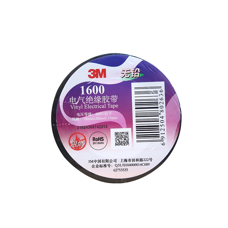 3M electrical insulation adhesive tape electrician wire flame-retardant rubberized fabric PVC waterproof and temperature resistant large roll black 20 m-1600 type