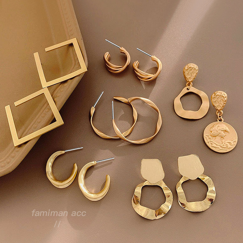 Golden Square (Silver Needle) Spiral Ear Needle (Silver Needle) Frosted Triangle (Silver Needle) Metal Irregular Ring Small Gold Circle 3cm (Silver Needle) Twist Small Circle (Silver Needle)