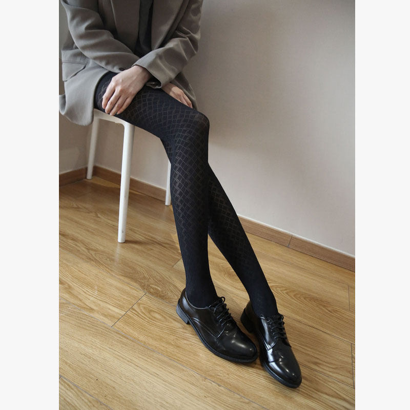 Special foreign trade retro dark pattern plaid pantyhose spring and autumn vertical stripes small plaid wavy jacquard pantyhose women's inner pantyhose