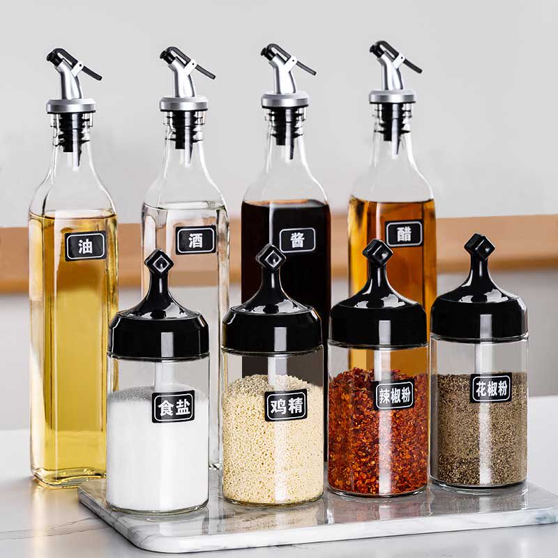 3 seasoning pots, 1 oil pot, stickers, 1 funnel seasoning pot, 4 seasoning pots, 4 oil pots, 4 stickers, funnel oil pot, 1 seasoning pot, 3 oil pots, 2 oil pots, stickers, leaks