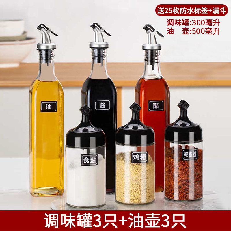Oil pot glass household leak-proof large kitchen oil and vinegar tank small oil tank soy sauce bottle vinegar bottle seasoning bottle set oil bottle