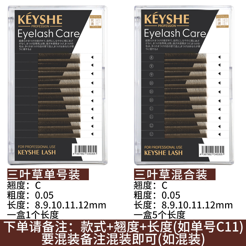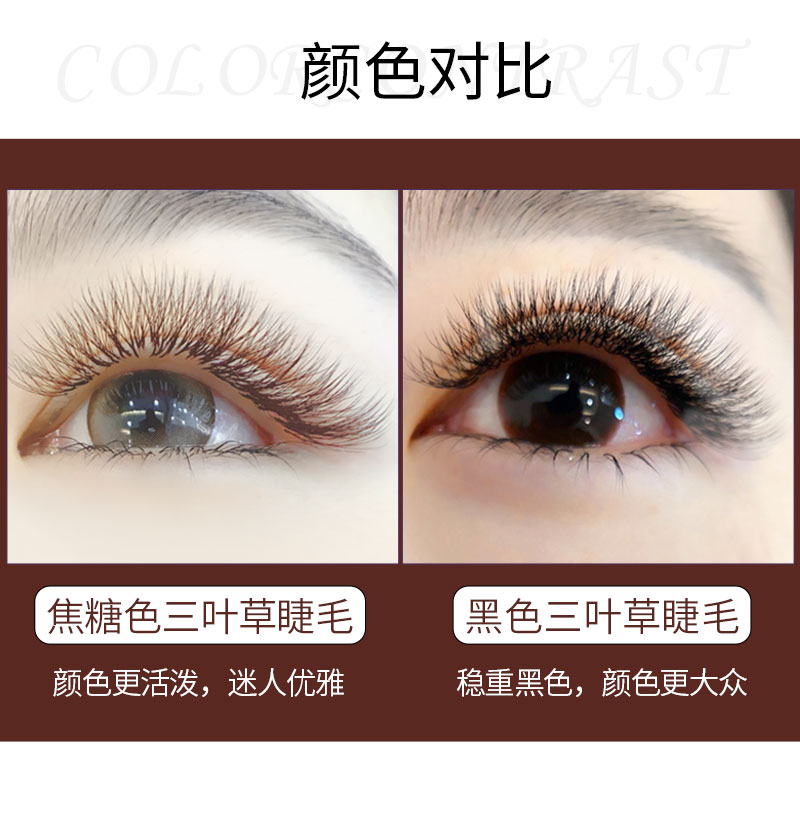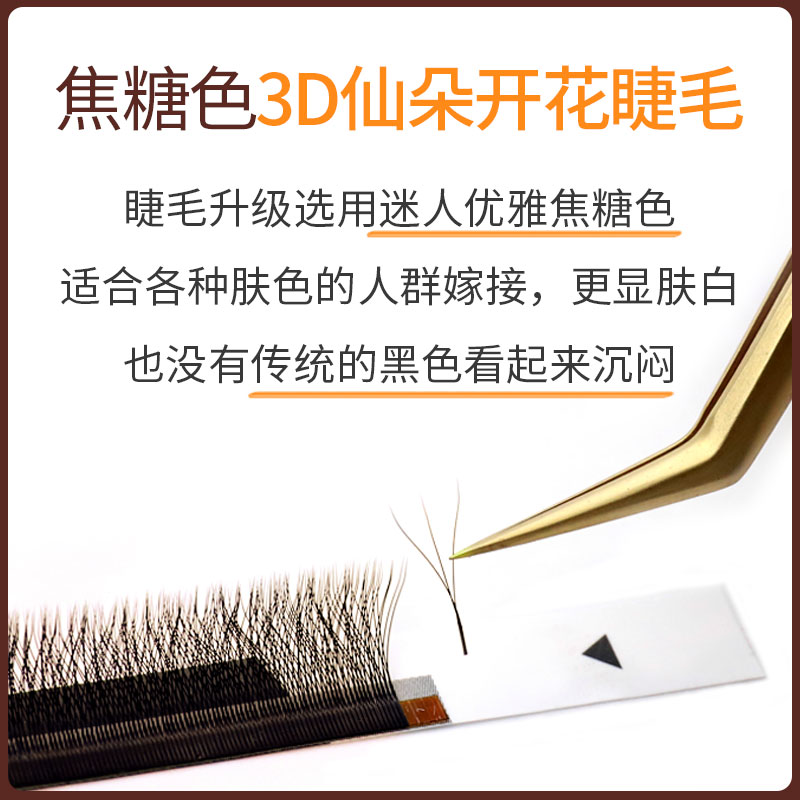 KEYSHE trifoliage caramel colour lashes grafted 3D sendo one second automatically blooming ultra soft water mink blooming hair