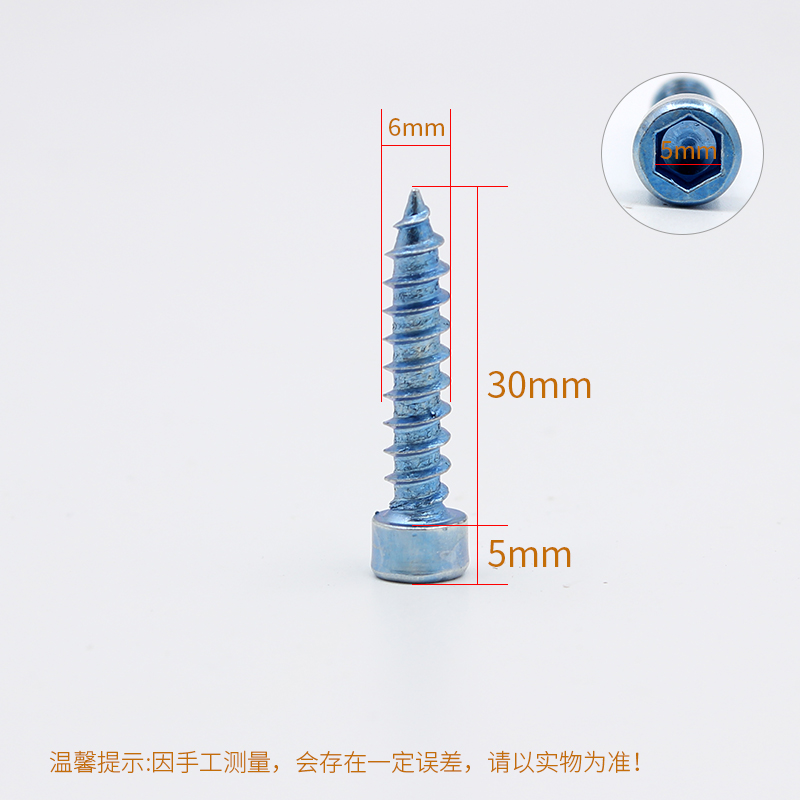 M6 inner hexagon fast self-tapping screw furniture wall cabinet moving door fixed screw 1000 grain wardrobe home hardware