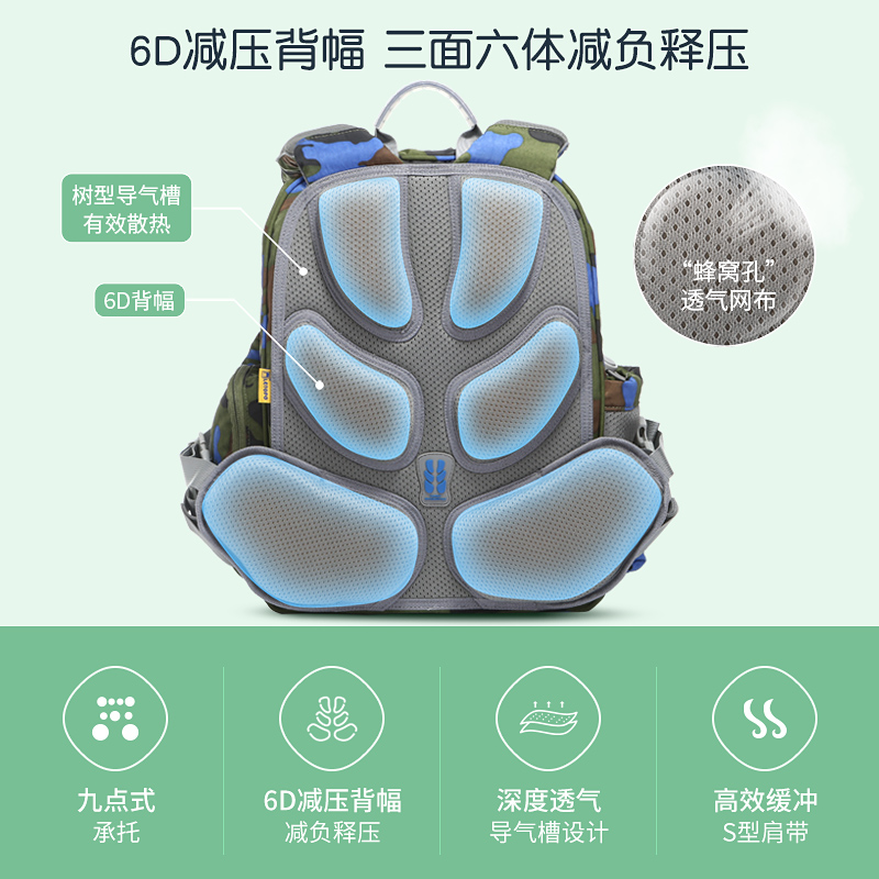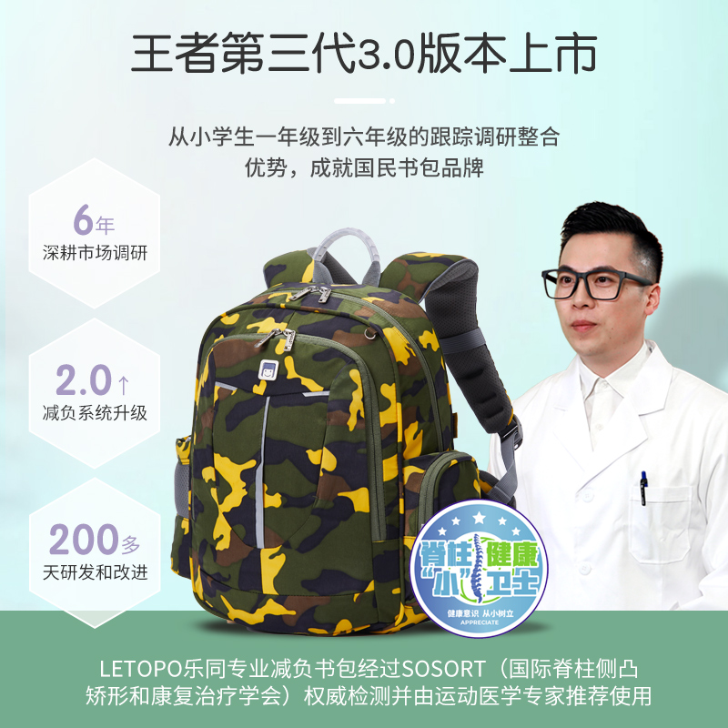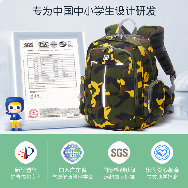 letopo Le Tong counter Protective ridge load reduction school bag Camouflage army green primary school backpack for grades one to three