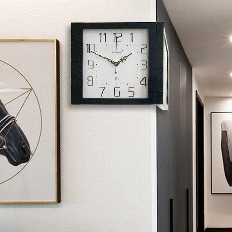 Modern simple creative double-sided wall clock Living room clock wall hanging fashion household two-sided wooden corner stone clock