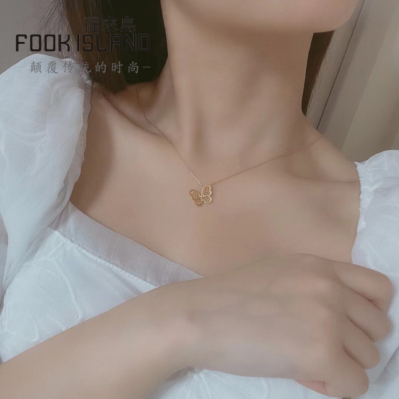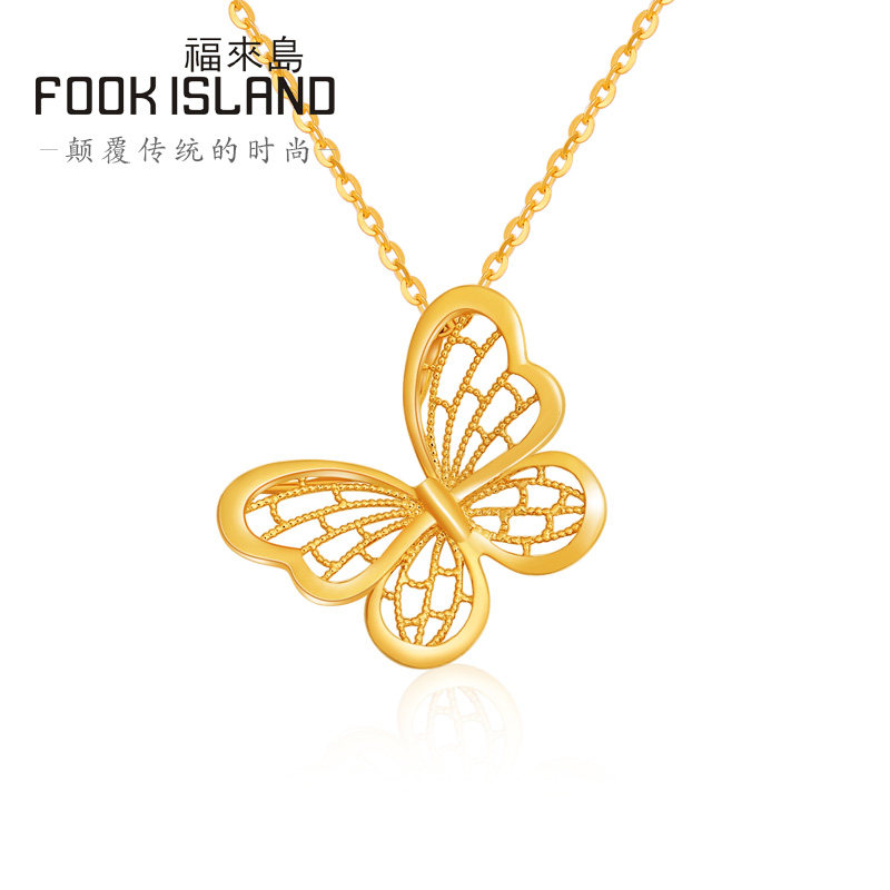 Fulai Island Gold Pendant 999 Pure Gold Necklace Pendant Fashion Filigree Butterfly Pure Gold Pendant Female Ancient Gold Pendant