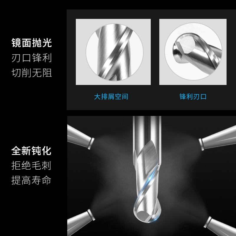 Hanna 55-degree tungsten steel aluminium with milling cutter ball cutter hard alloy milling aluminium special ball head milling cutter lengthened R angle ball cutter