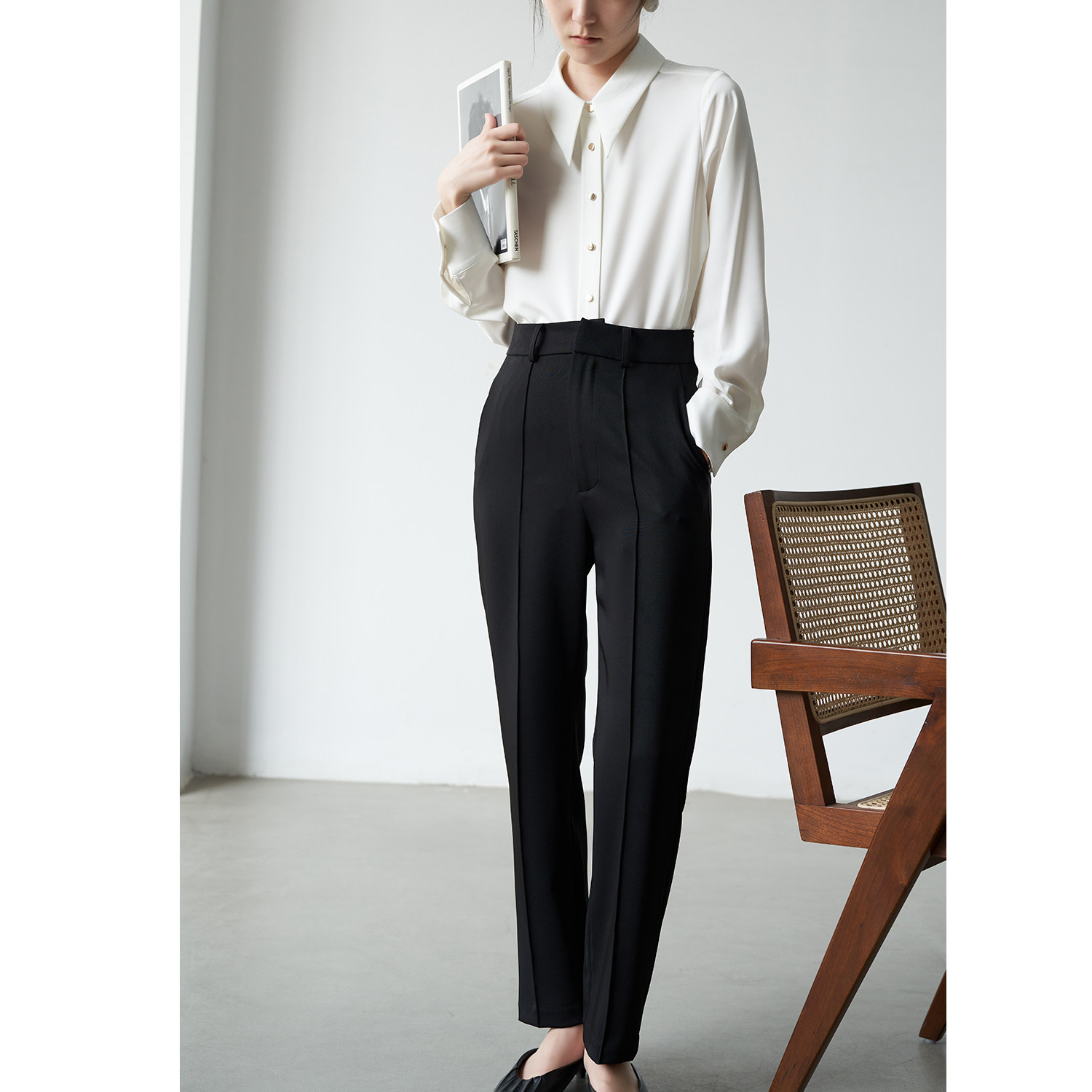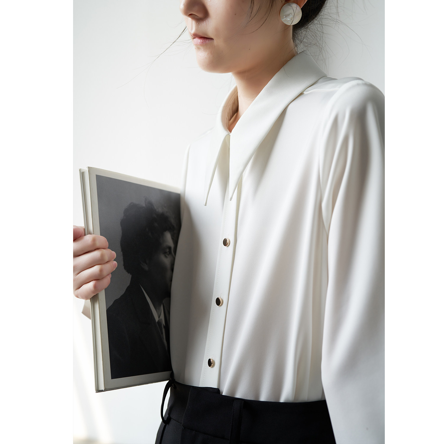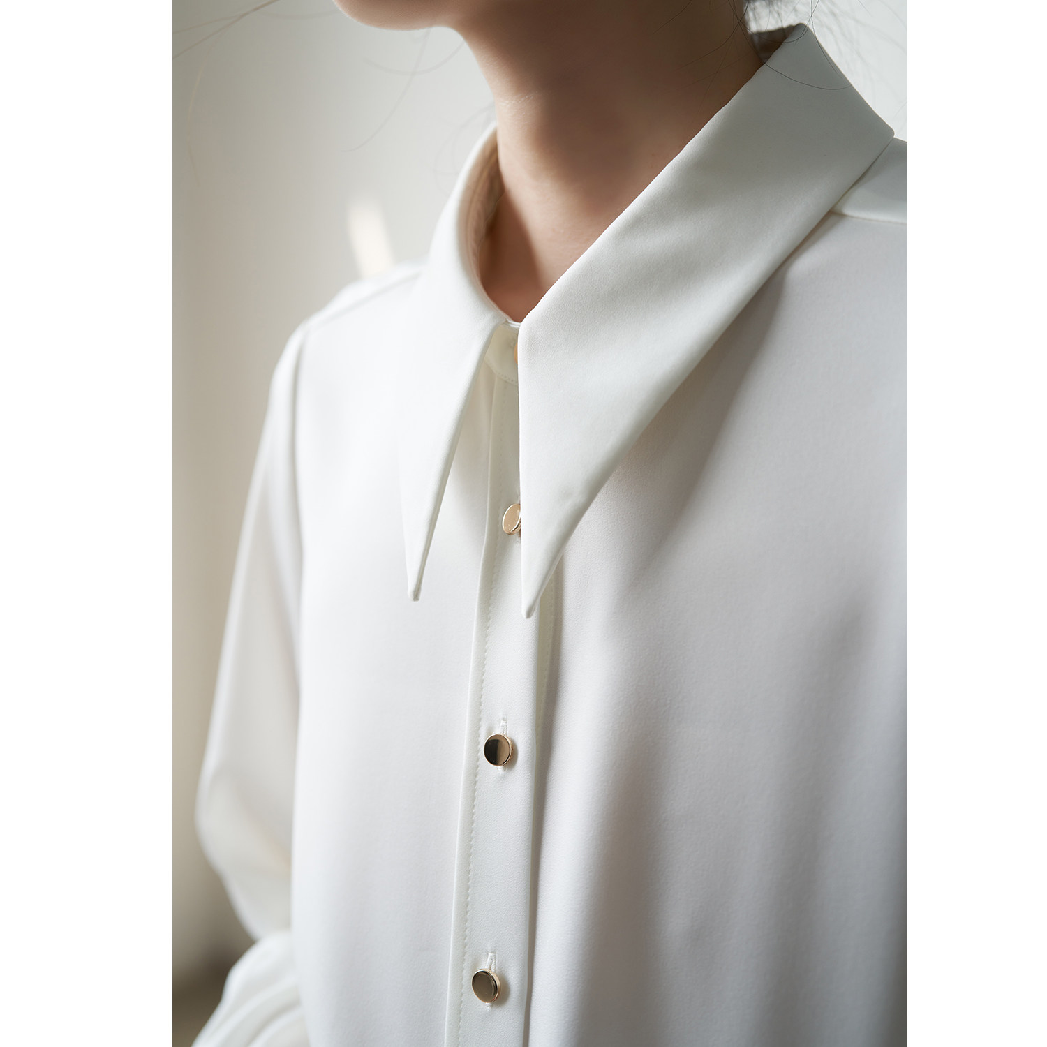 SS STUDIO exquisite small pointed neck satin glossy commuter professional white shirt female design sense minority
