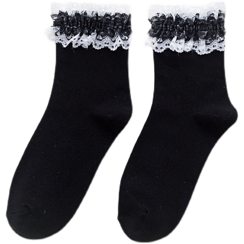 Lolita black lace mid-tube socks white JK college style uniform Japanese student princess girl cotton socks