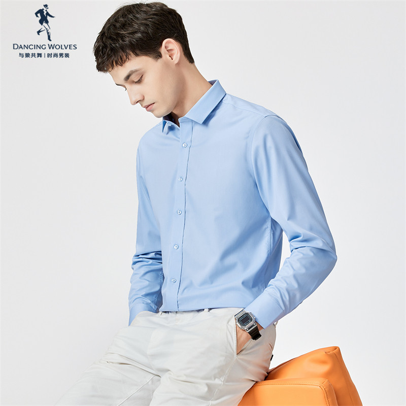 (Easy-to-handle) with the wolf condance long-sleeved shirt man 2023 fall new business pure color career positive dress lining-Taobao