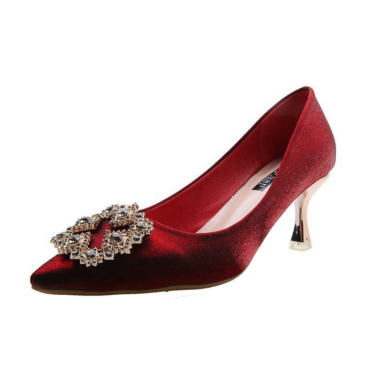 Red High heel Shoe woman 2022 Spring new bridal shoes wedding shoes can normally wear 100 hitch and temperament single shoes