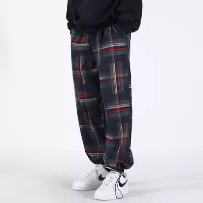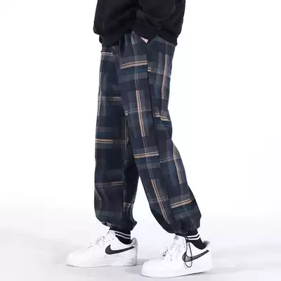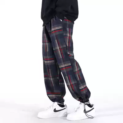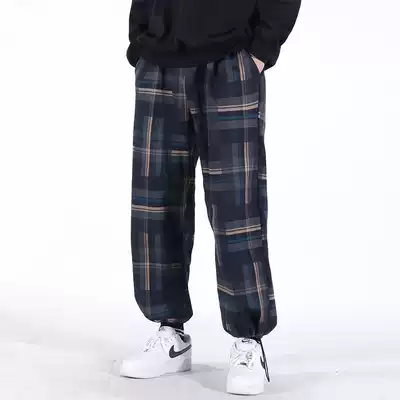 Mr fortyulzzang lattice pants men's loose trend draw rope leg casual pants ins Korean sports pants