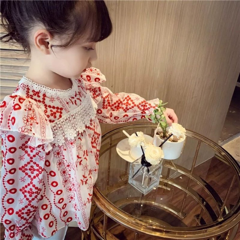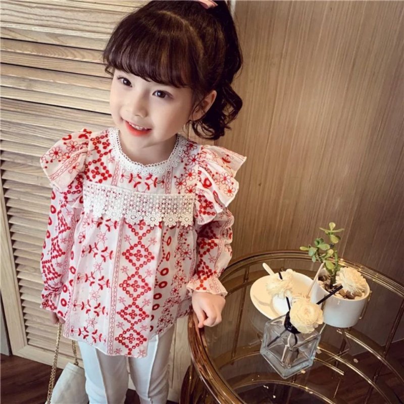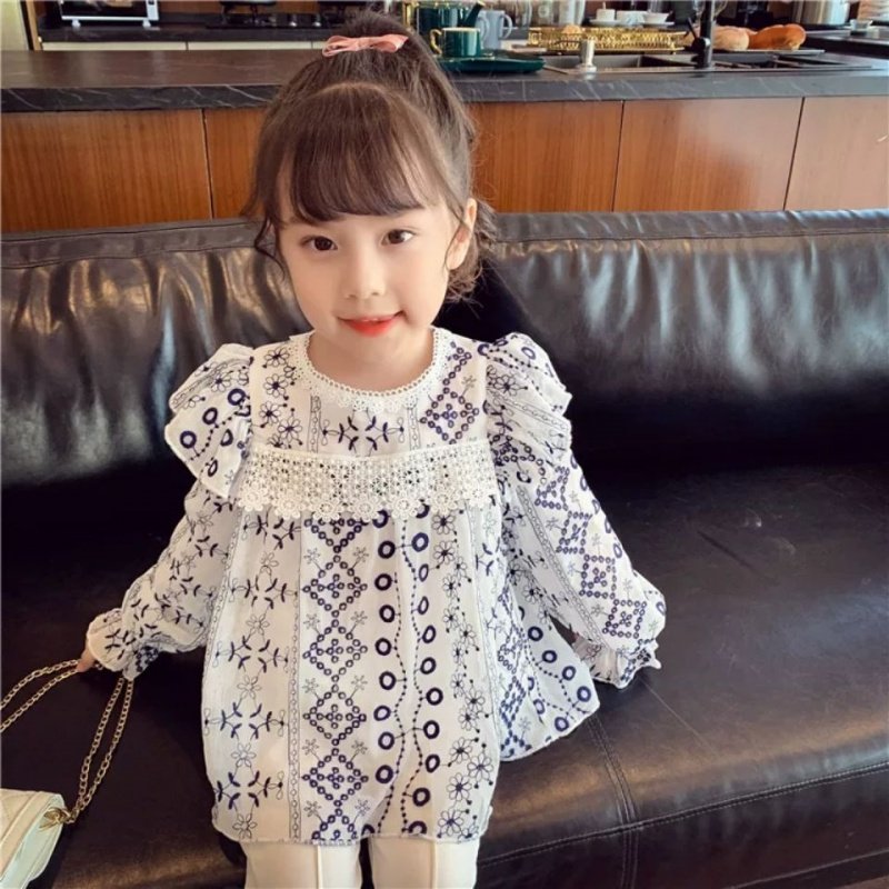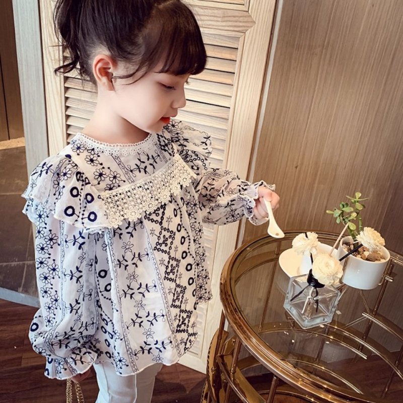 Girls shirt spring dress 2021 new children Korean version of the foreign lace shirt little girl long sleeve top tide