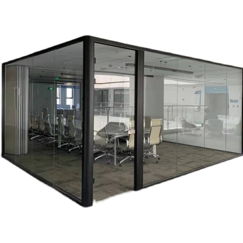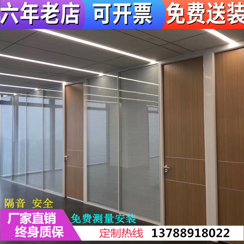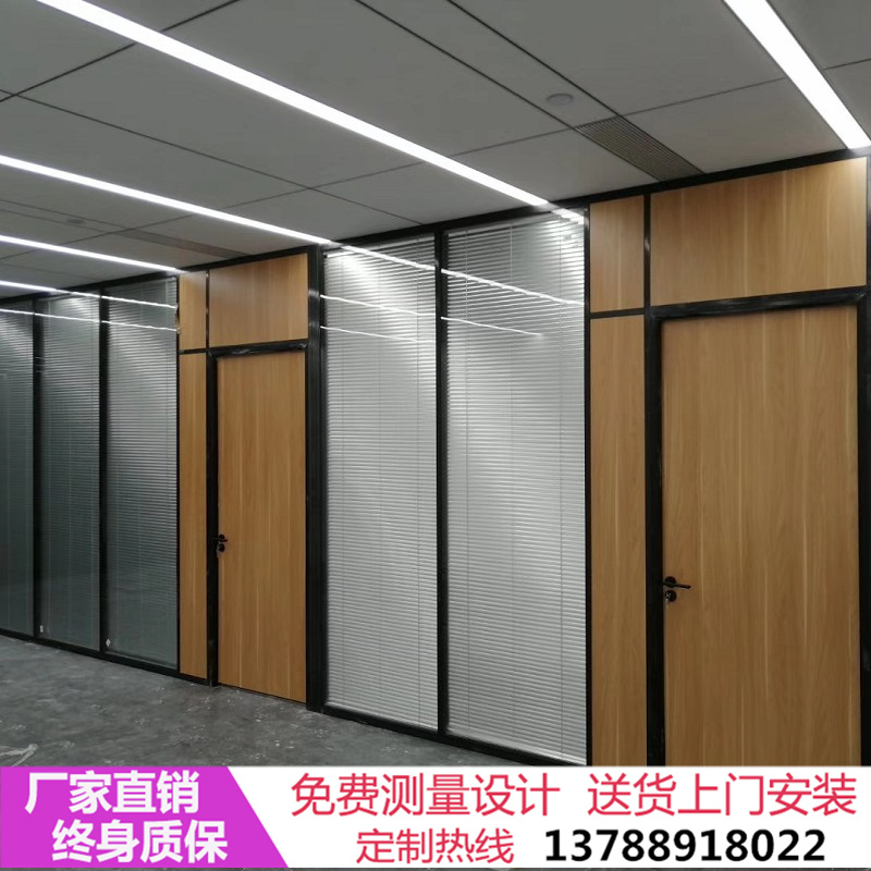 Office Glass Partition Wall High Partition Aluminum Alloy Shutters Double Tempered Glass Inter Screen Partition Furnishing