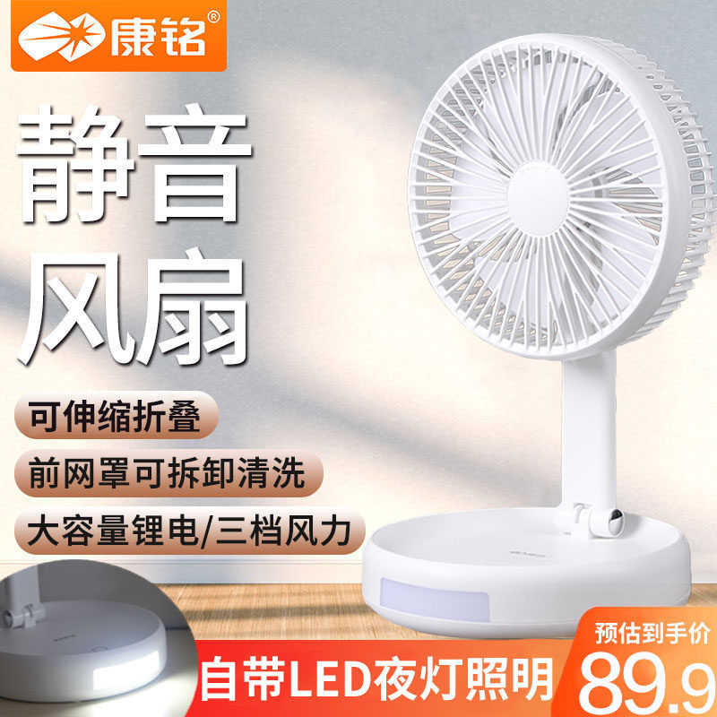 Kangming electric fan large wind rechargeable small table fan student dormitory desktop office home small fan