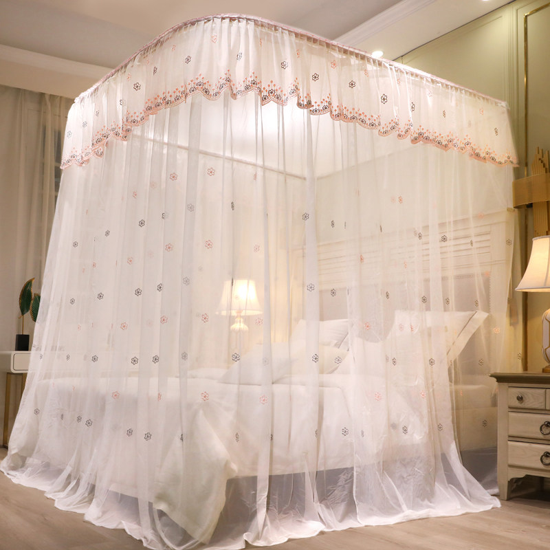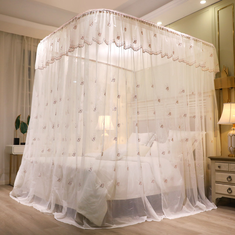 New dust-proof top cloth embroidery u type rail mosquito net 1 5m1 8 m track thickened floor encryption home summer