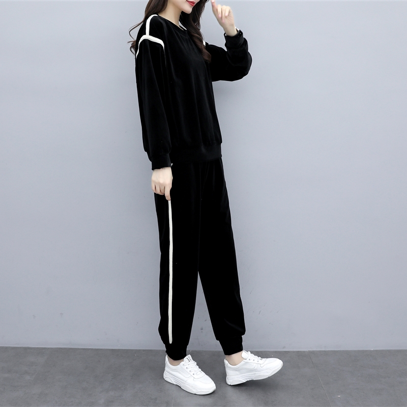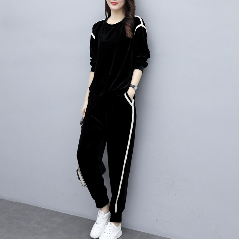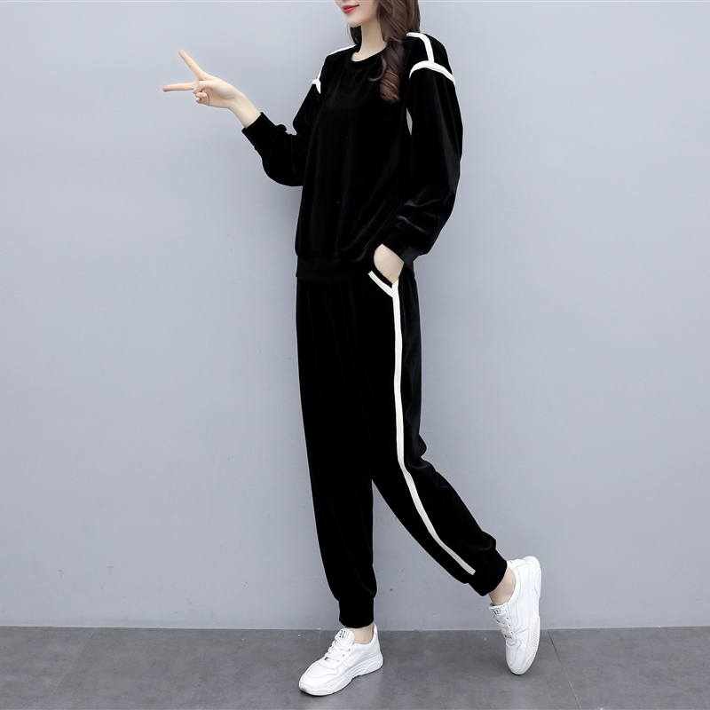 Western-style golden velvet casual sportswear suit female spring and autumn 2022 new age-reducing fashion loose and thin two-piece suit