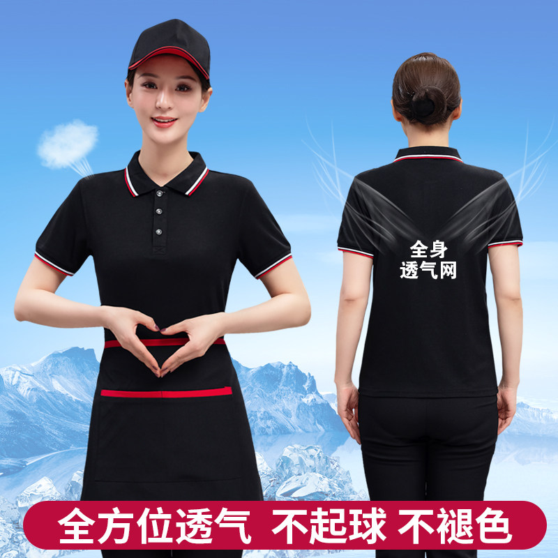 Dining Room Drinking Attendant Working Clothes Woman Short Sleeve Fast Food Burger Hot Pot Milk Tea Barbecue Hotel T-Shirt Print Character Summer Dress