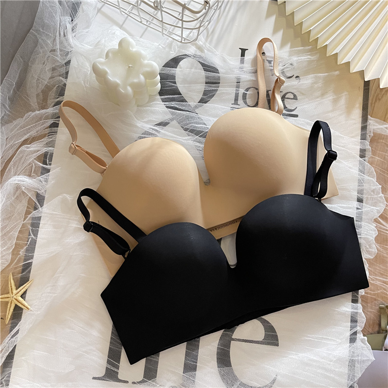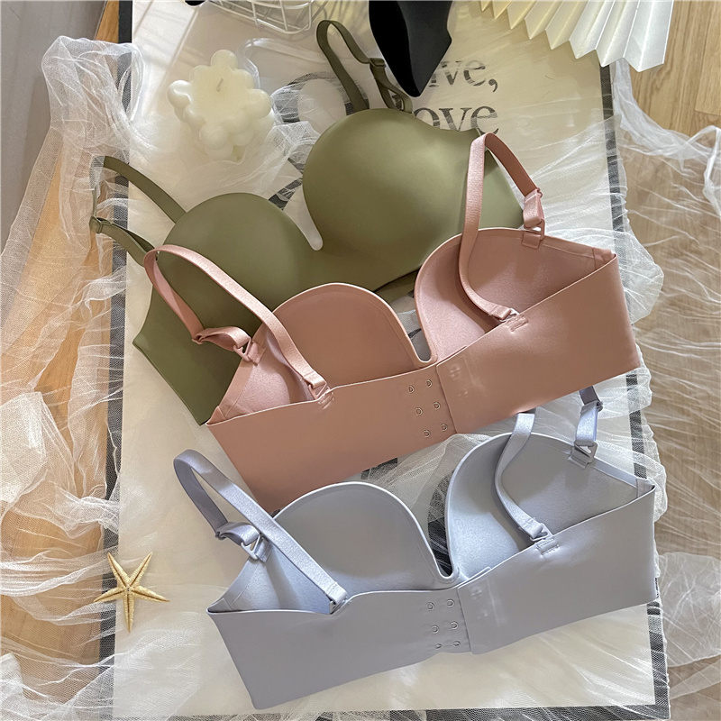Japanese baby cotton seamless underwear women's small breasts gather on the top without steel rings on the thin bottom thick collection pair of opalescent bras