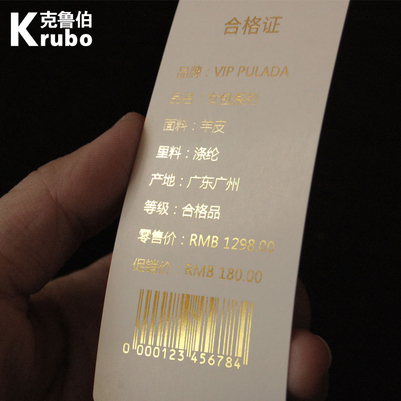 No version hot gold paper tea bubble bag PET matt silver synthetic paper label nylon silk satin with copper version adhesive barcode printer label clothing hanging plate qualified license bright gold full resin carbon belt