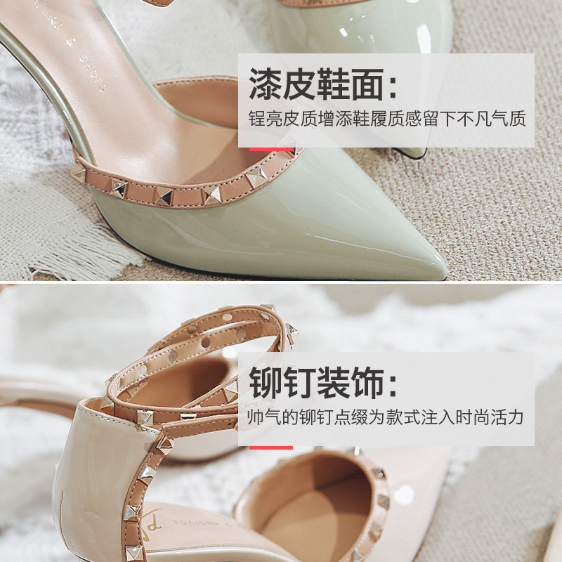 High-heeled shoes women's 2022 spring and summer new leather all-match Baotou one-word belt fashion stiletto sandals rivet single shoes