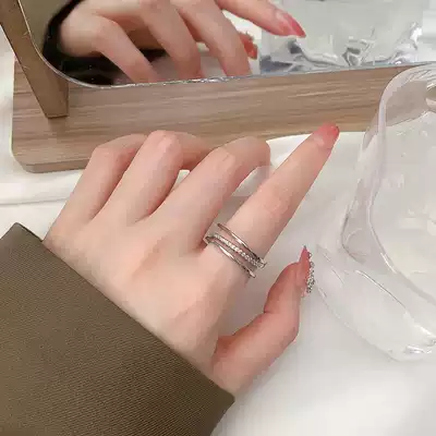 Silver diamond-encrusted ring ins simple cold wind ring female niche design fashion personality open index finger ring