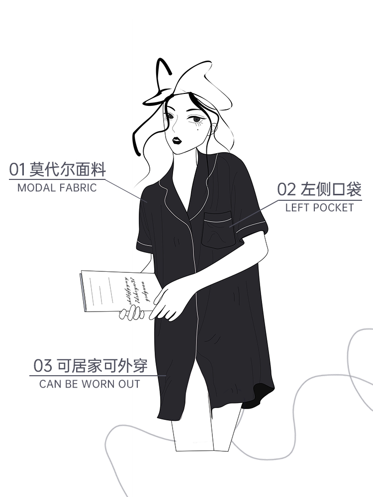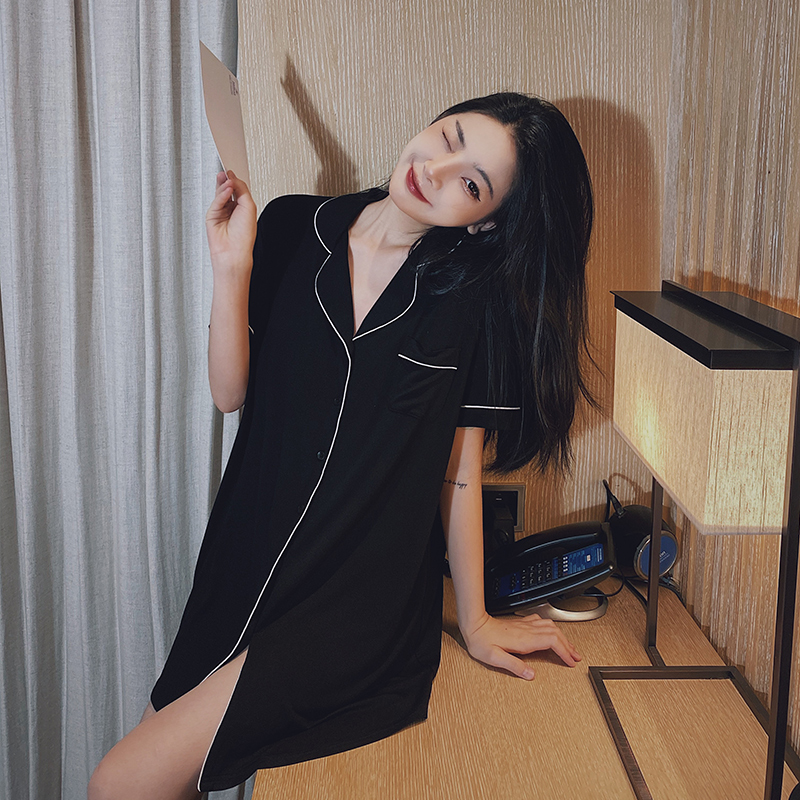 House deer Mordale short sleeve shirt style nightgown women Summer thin casual can wear pajamas loose home clothes