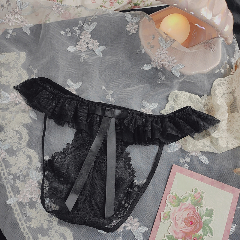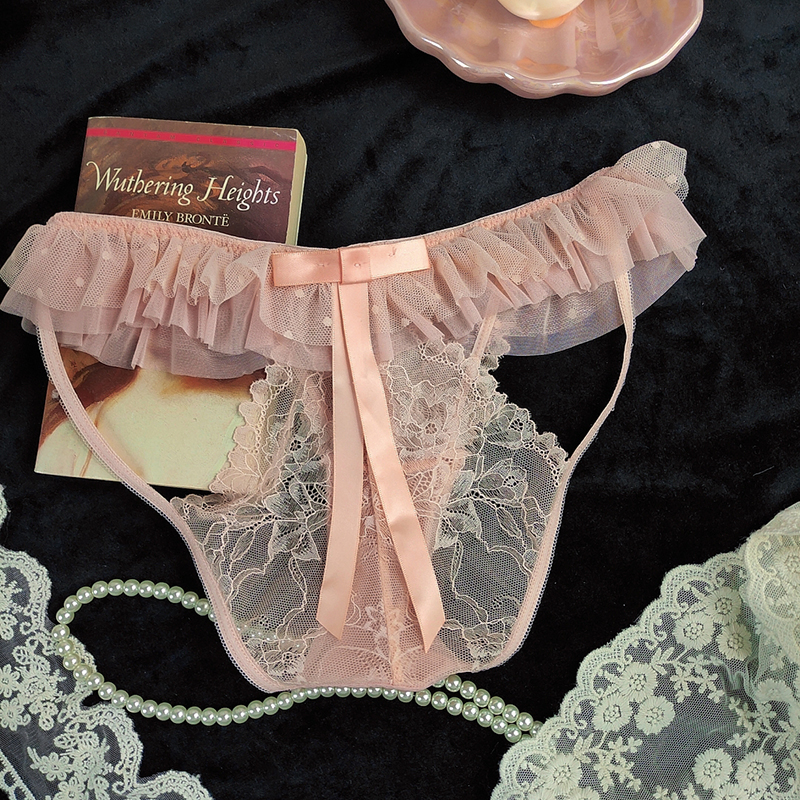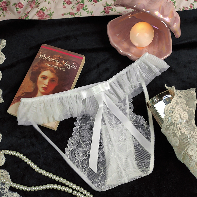 Venus sexy lace transparent semi-exposed hips large bow panties women's mid-rise European hot temptation briefs