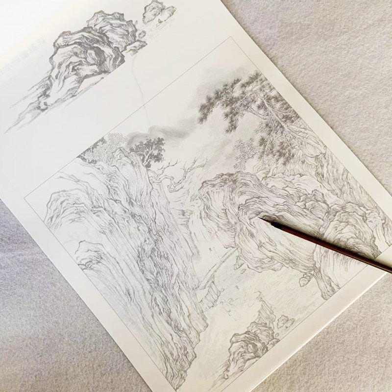 China Painting Zero Foundation Starter Stroke White Sketching Manuscript Landscape Sketch of Mountain Stone Mountain Stone Trees Mustard-Taobao