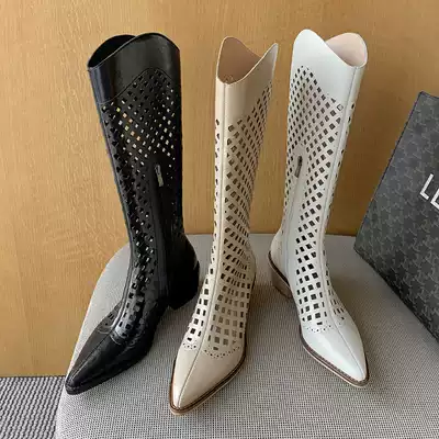 v Pointe thick and hollow boots women's summer grid boots leather mesh cool boots white high-tube mesh boots