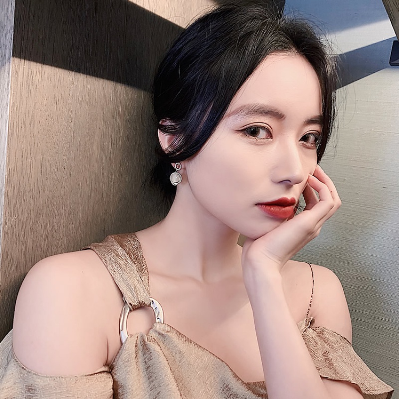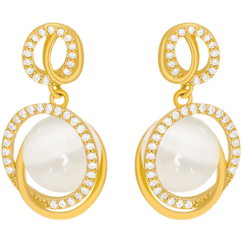 "Heart to heart" fast luxury~earrings female silver cat eyestone anti-allergic temperament in 2022 new senior sensation