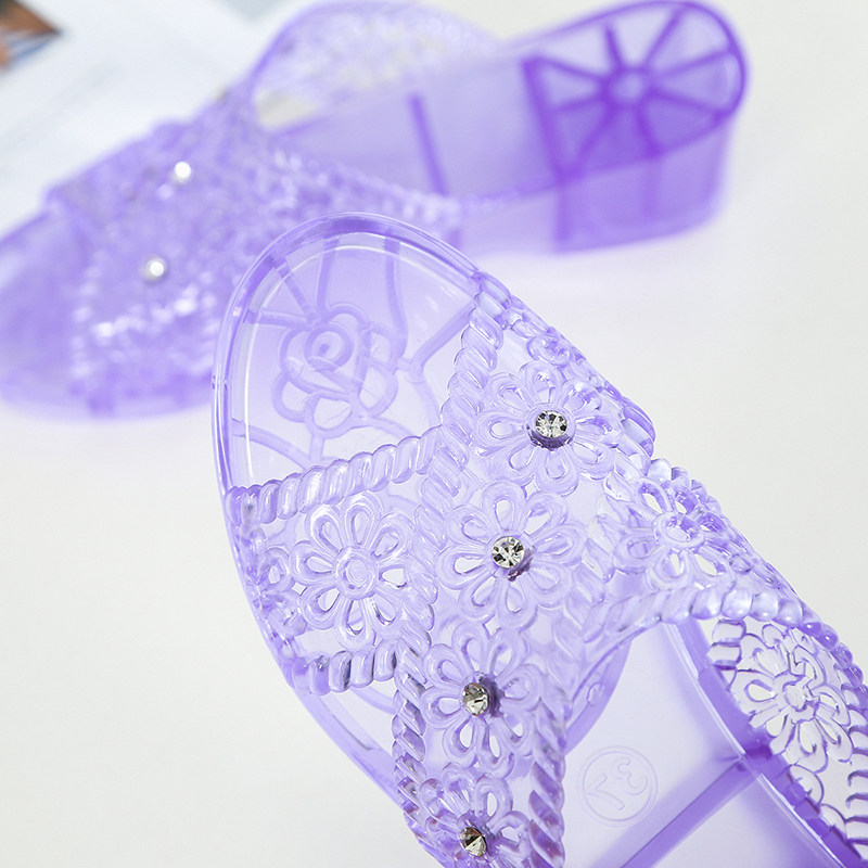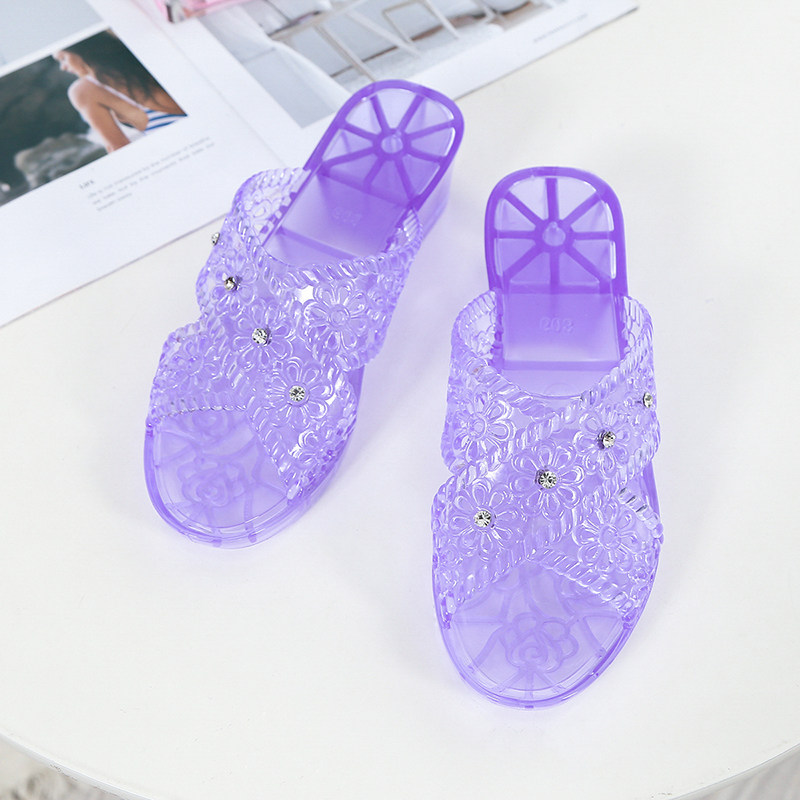 Fashion Crystal Cool Slippers Shoes Female Summer Net Infrared Wearing-lined Coarse Heels with Mom Seaside Anti-slip slippers Slope heel jelly