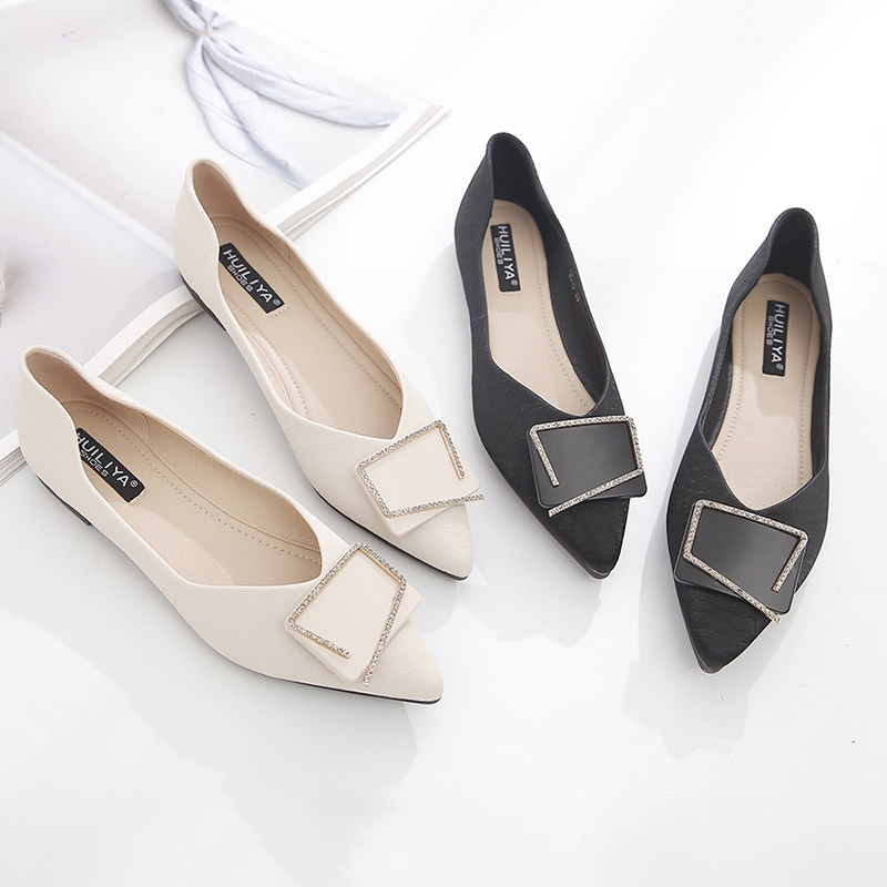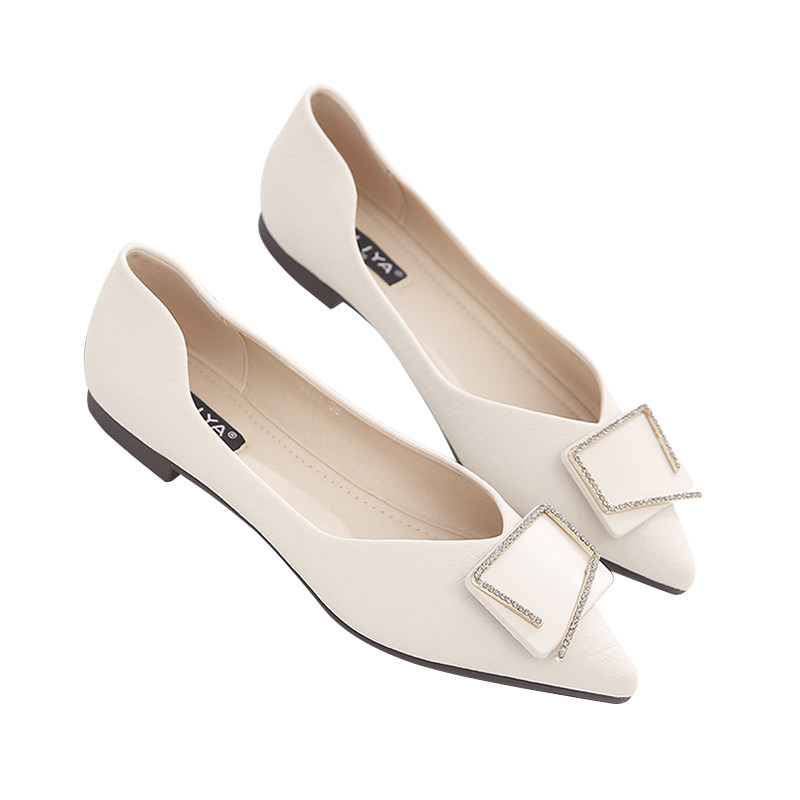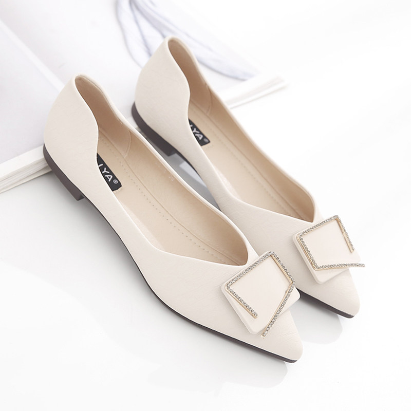 Single shoes lady floor 2023 new spring and autumn bean shoes summer with shallow soft soft soles comfortable tip female shoes