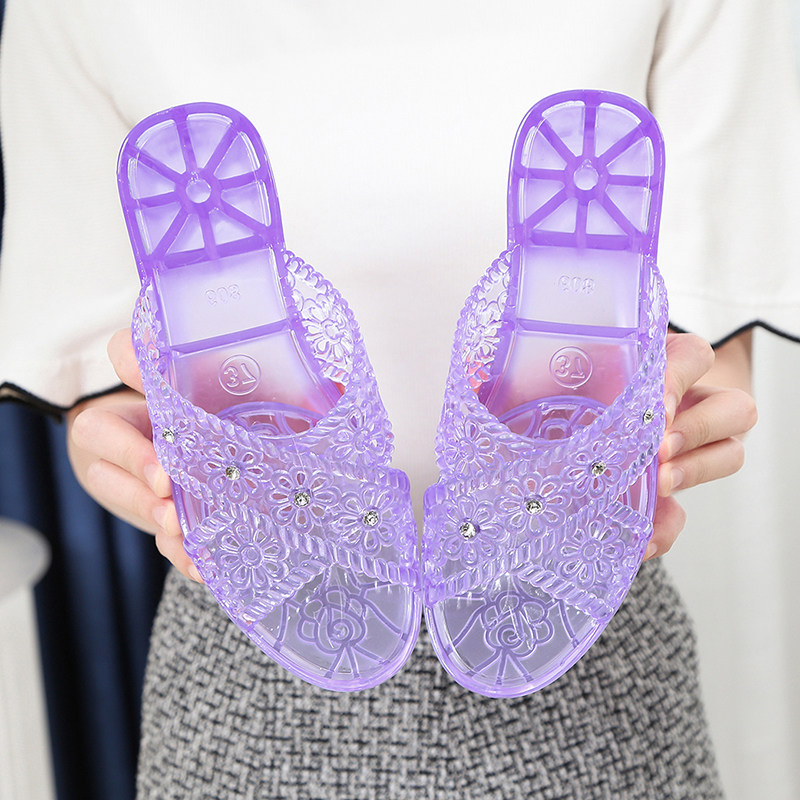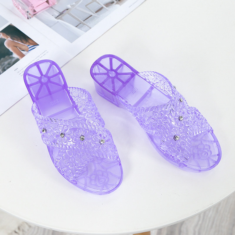 Net red popular crystal sandals and slippers women's summer fashion flip flops outside wear wedge heel mother non-slip slippers high-heeled jelly - Taobao