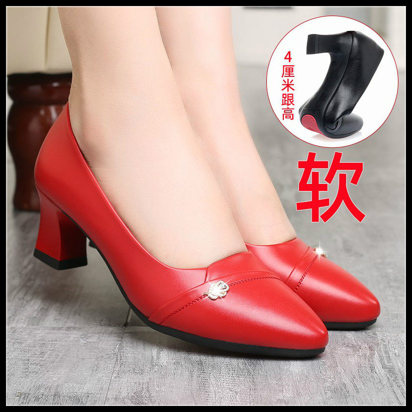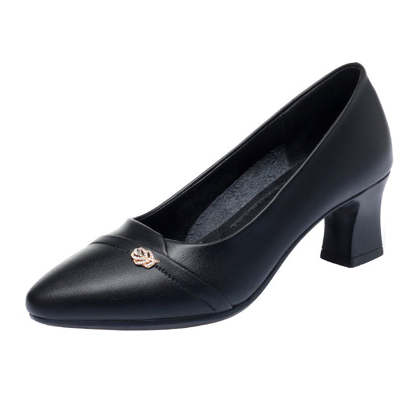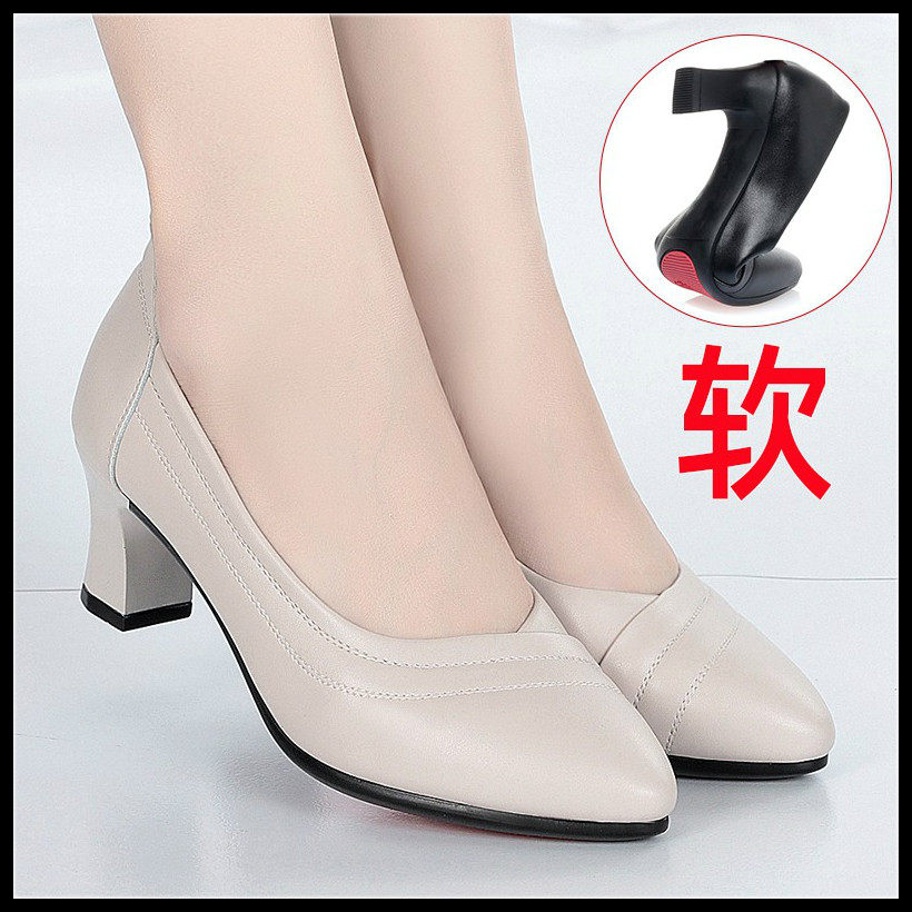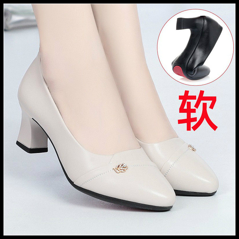 Mother's shoes 2021 spring and autumn soft-soled middle-aged 40-year-old women's shoes thick heel all-match shallow single shoes medium heel leather shoes