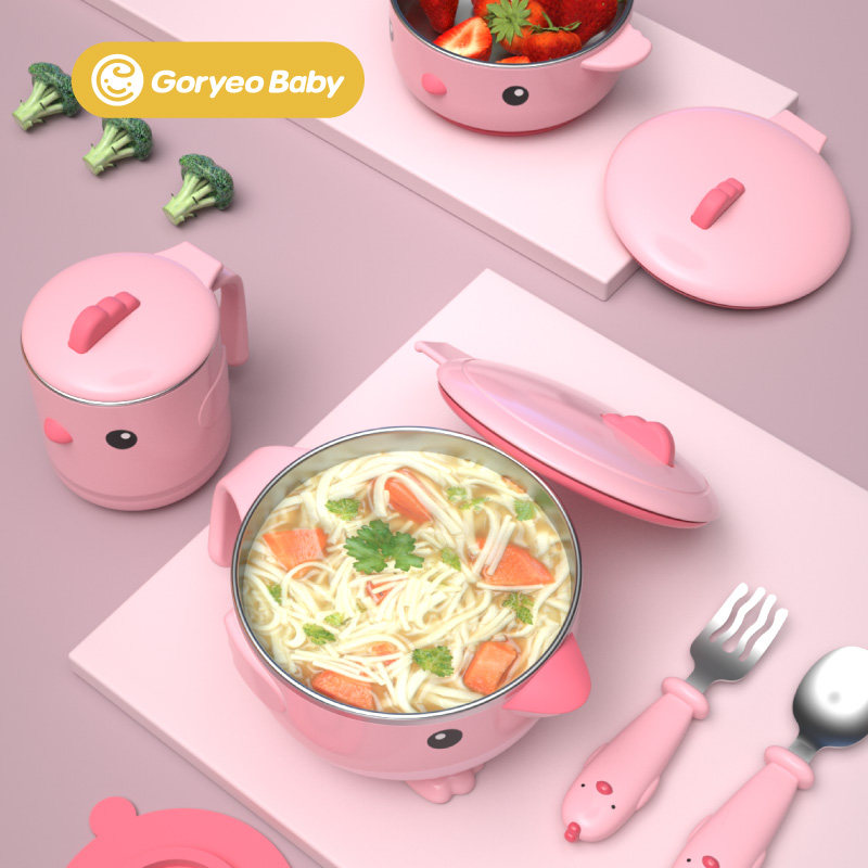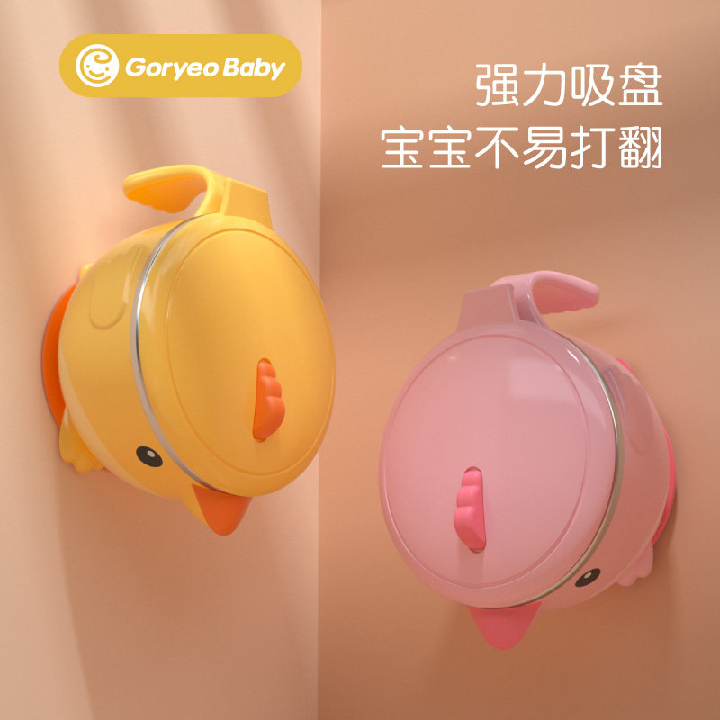 Korean baby tableware baby stainless steel anti-fall bowl sucker bowl baby water bowl non-staple food insulation bowl