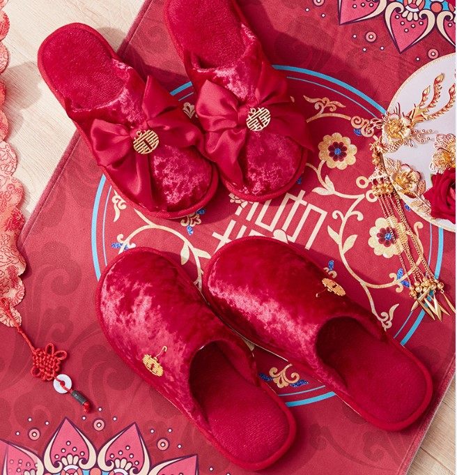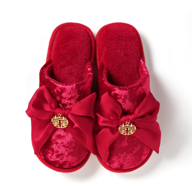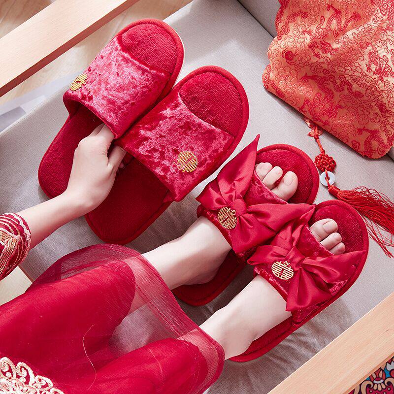 Wedding Slippers Festive Lovers Autumn Winter Great Red Couple of Weddings New Wedding Men and women Couple non-slip cotton slippers