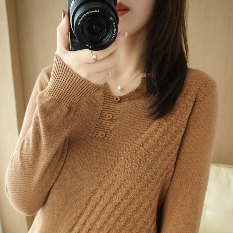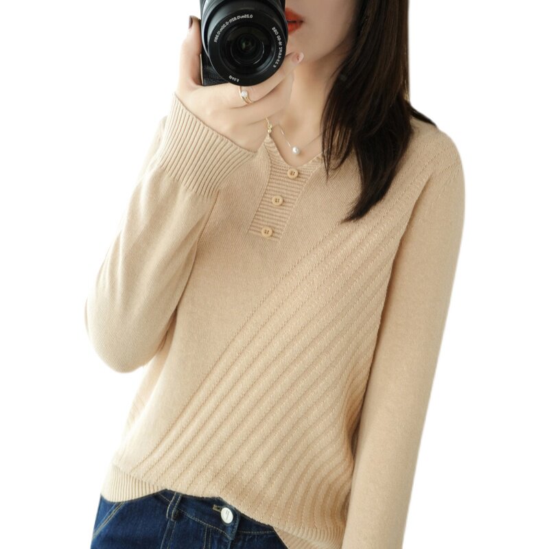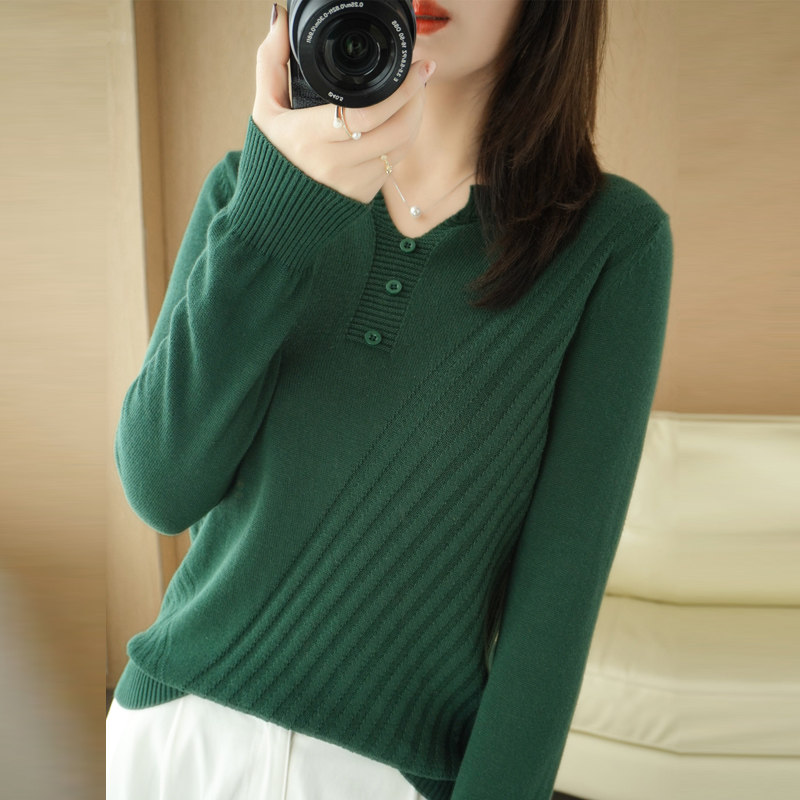 Pure cotton wire coat woman V-collar sleeve knitting shirt spring and autumn and loose thin sweater can be worn