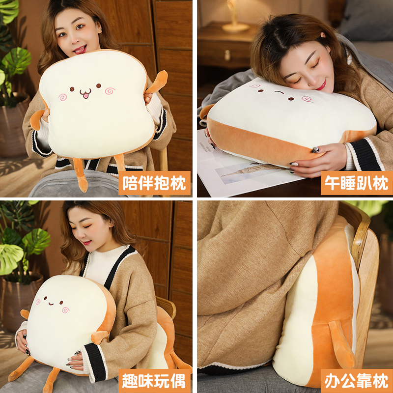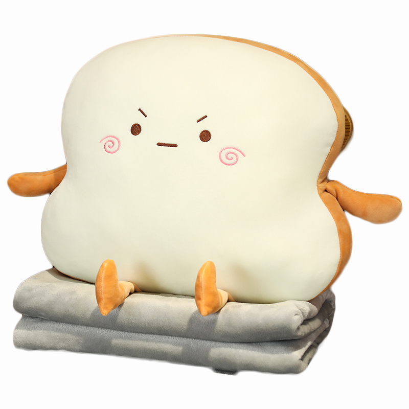 Cute toast bread pillow quilt dual-use car folding pillow office nap blanket two-in-one four seasons