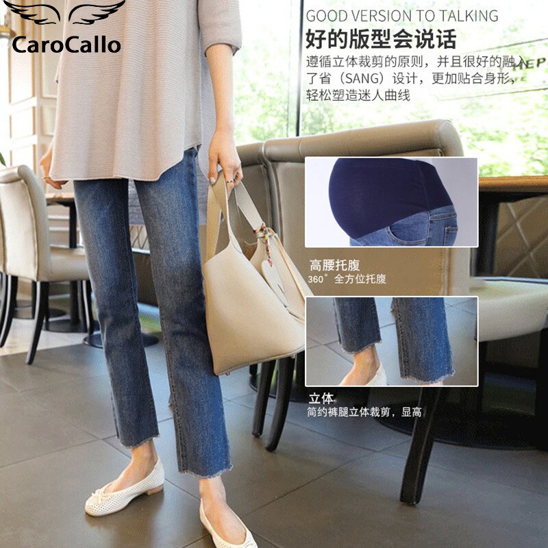 Pregnant woman Spring summer dress new beating underhorn wide-legged jeans Children's spring and autumn wear thin and large size Tide Moms Fashion
