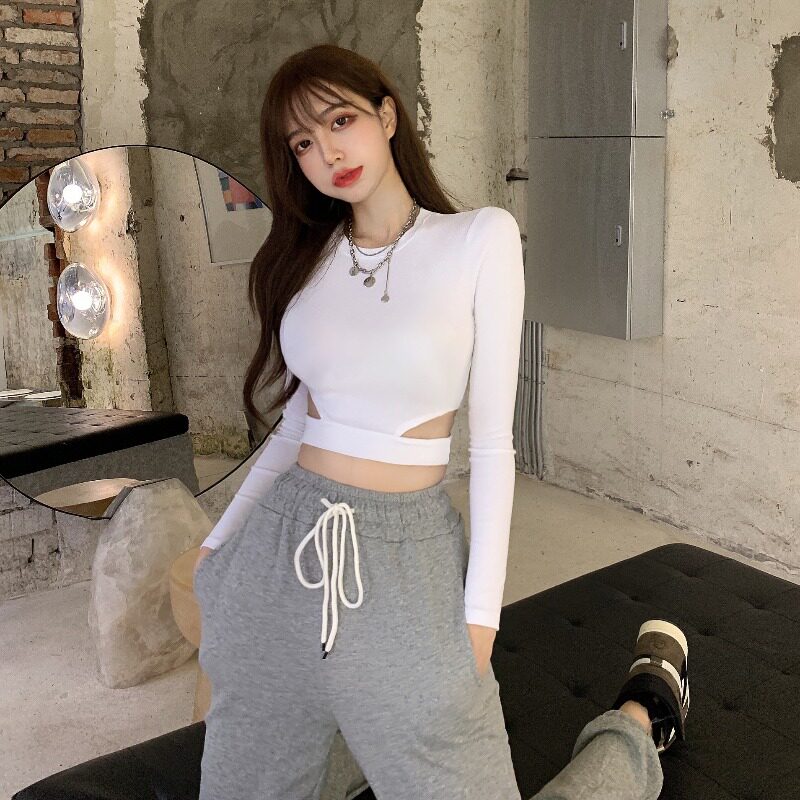 Vanya Spring and Autumn Lost Hollow Sleeve T-shirt Woman Han Edition Short Short Punch Clothes