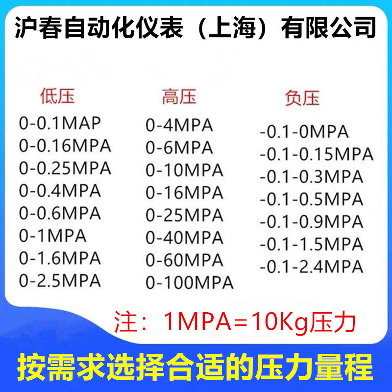 Shockproof YN-100 range 0-0 1MPA shockproof YN-100 range 0-0 16MPA shockproof YN-100 range 0-0 25MPA