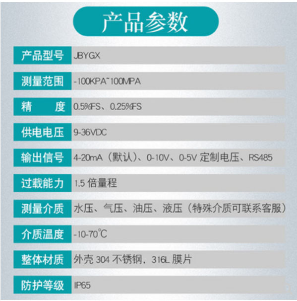 Ronghui JBYGX-ASCO diffusion silicon controller 0-50MPa hydraulic 4-20mA water hydraulic transmitter spot