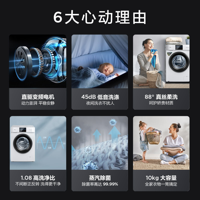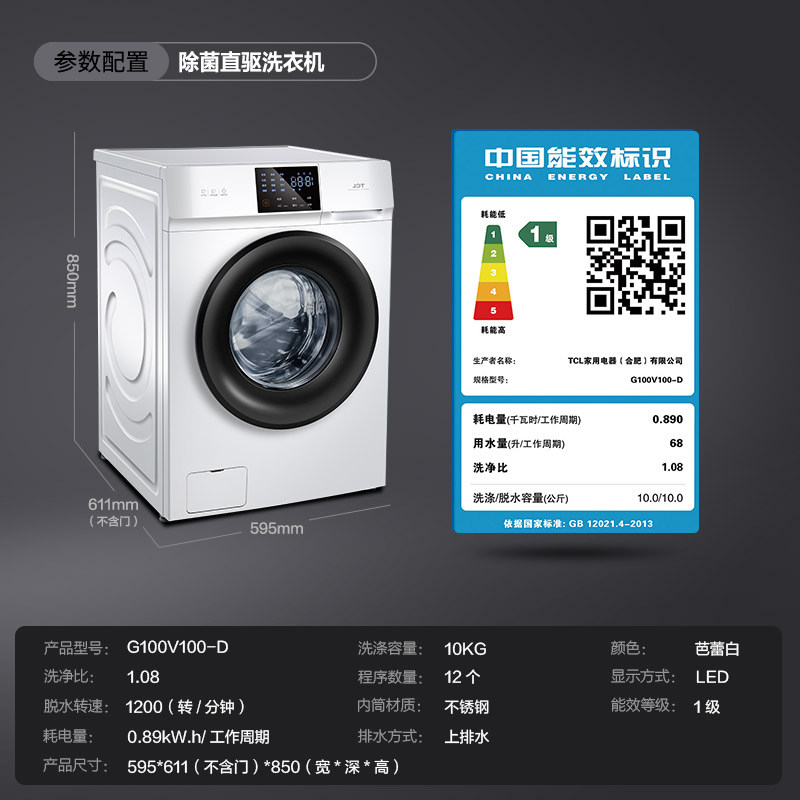 TCL 10kg energy-saving mute frequency conversion drum fully automatic first-class energy-saving household washing machine