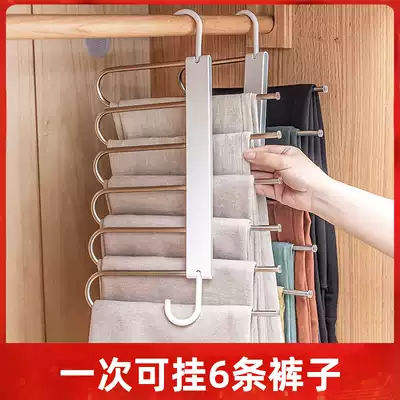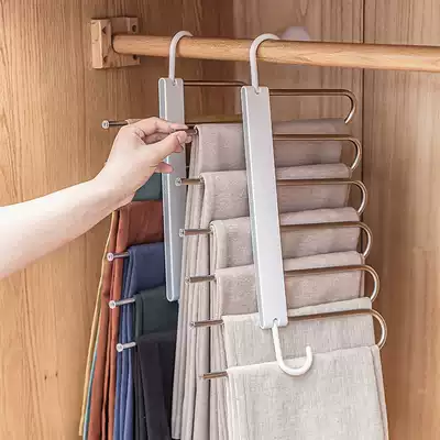 Magic pants frame stainless steel multifunctional padded folding telescopic frame wardrobe pants non-slip storage rack pants rack