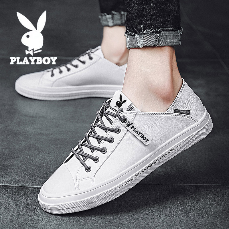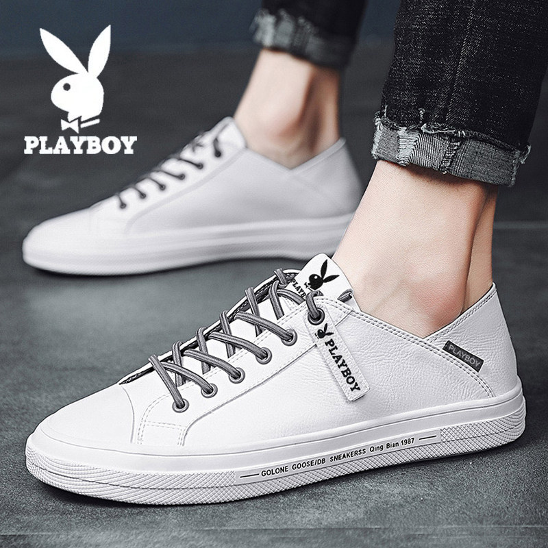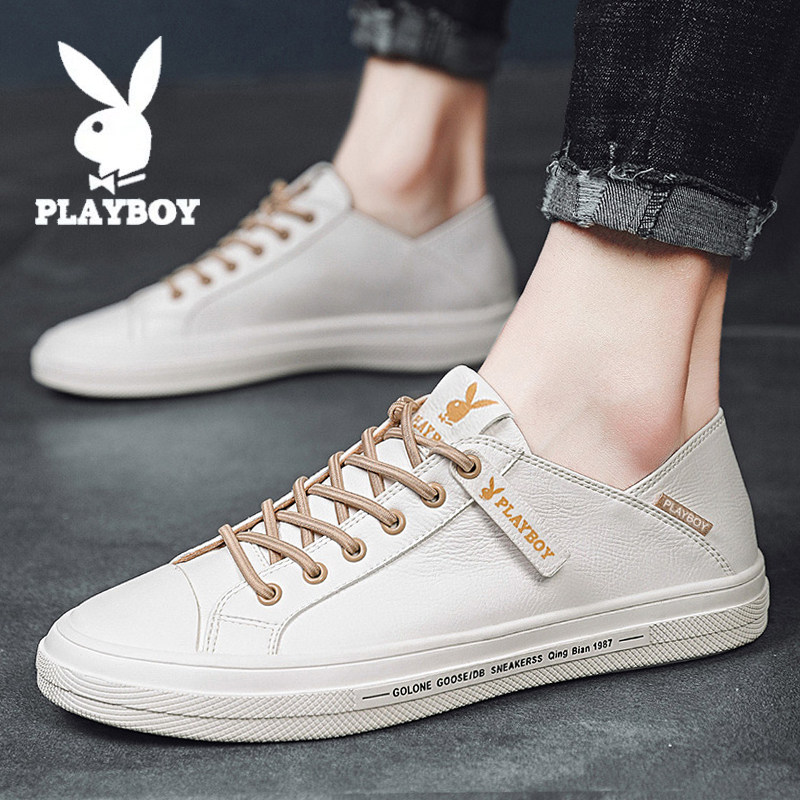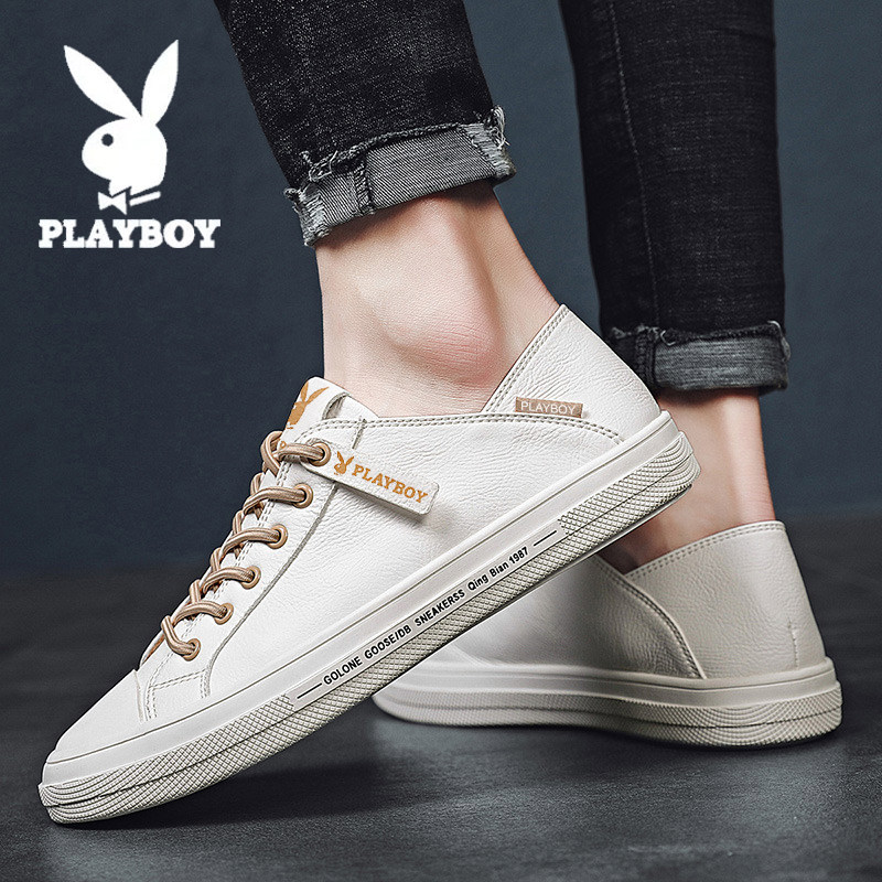 Playboy men's shoes summer white shoes leather all-match one pedal lazy beanie leather shoes casual soft panel shoes